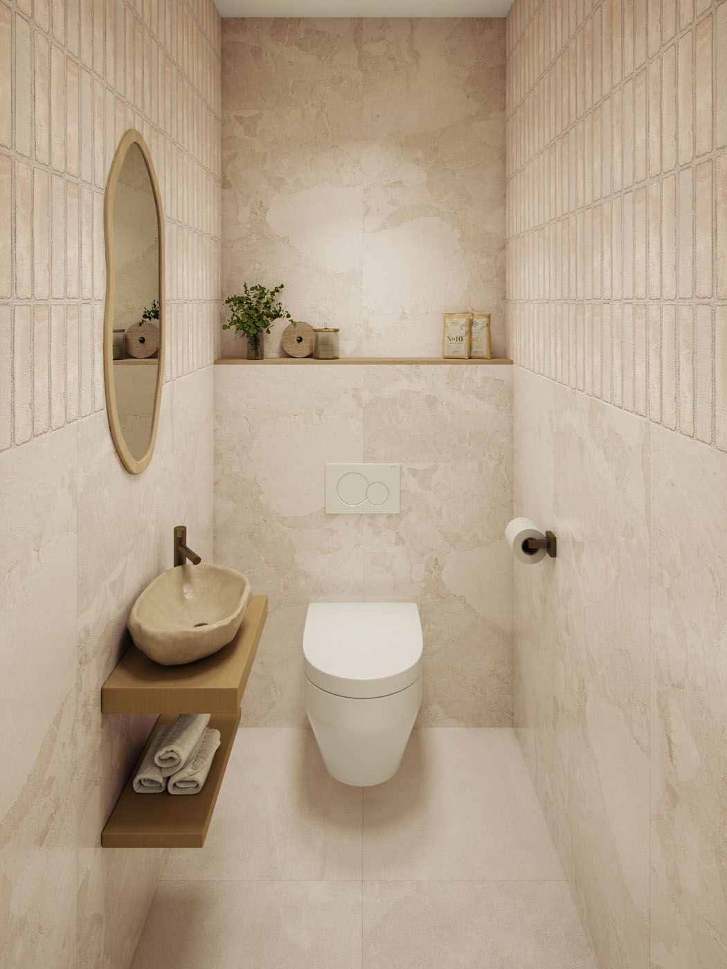 Een toilet en/of badkamer die straalt van stijl