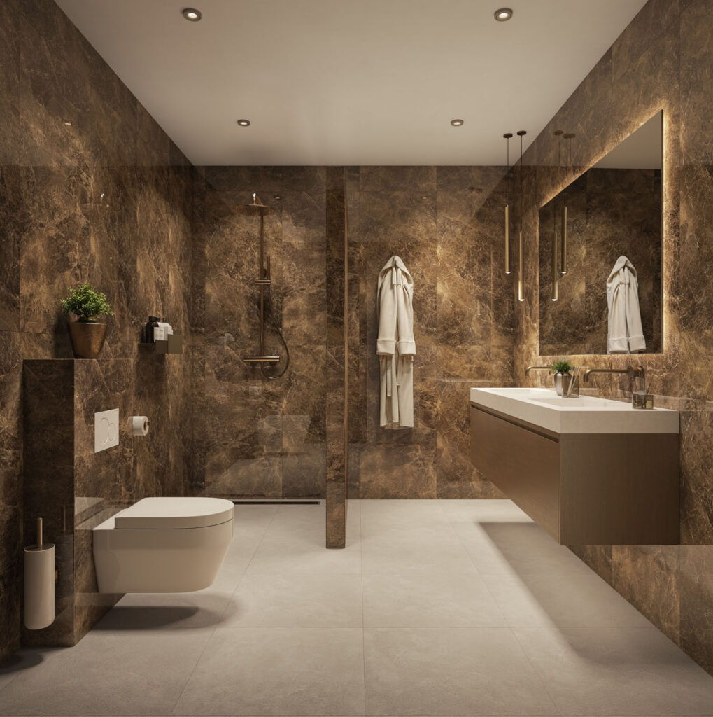 Stel je een plek voor waar je elke ochtend het gevoel hebt dat je incheckt in een boutiquehotel. Waar rijke materialen, glanzende details en warme tinten samenkomen tot een ruimte vol comfort en klasse. Dat is Hotel Chique. Een badkamer of toilet in deze stijl straalt rust uit, maar is tegelijk allesbehalve bescheiden. Hier gaat het om sfeer, verfijning en een tikkeltje glamour. Precies genoeg om je elke dag bijzonder te voelen.