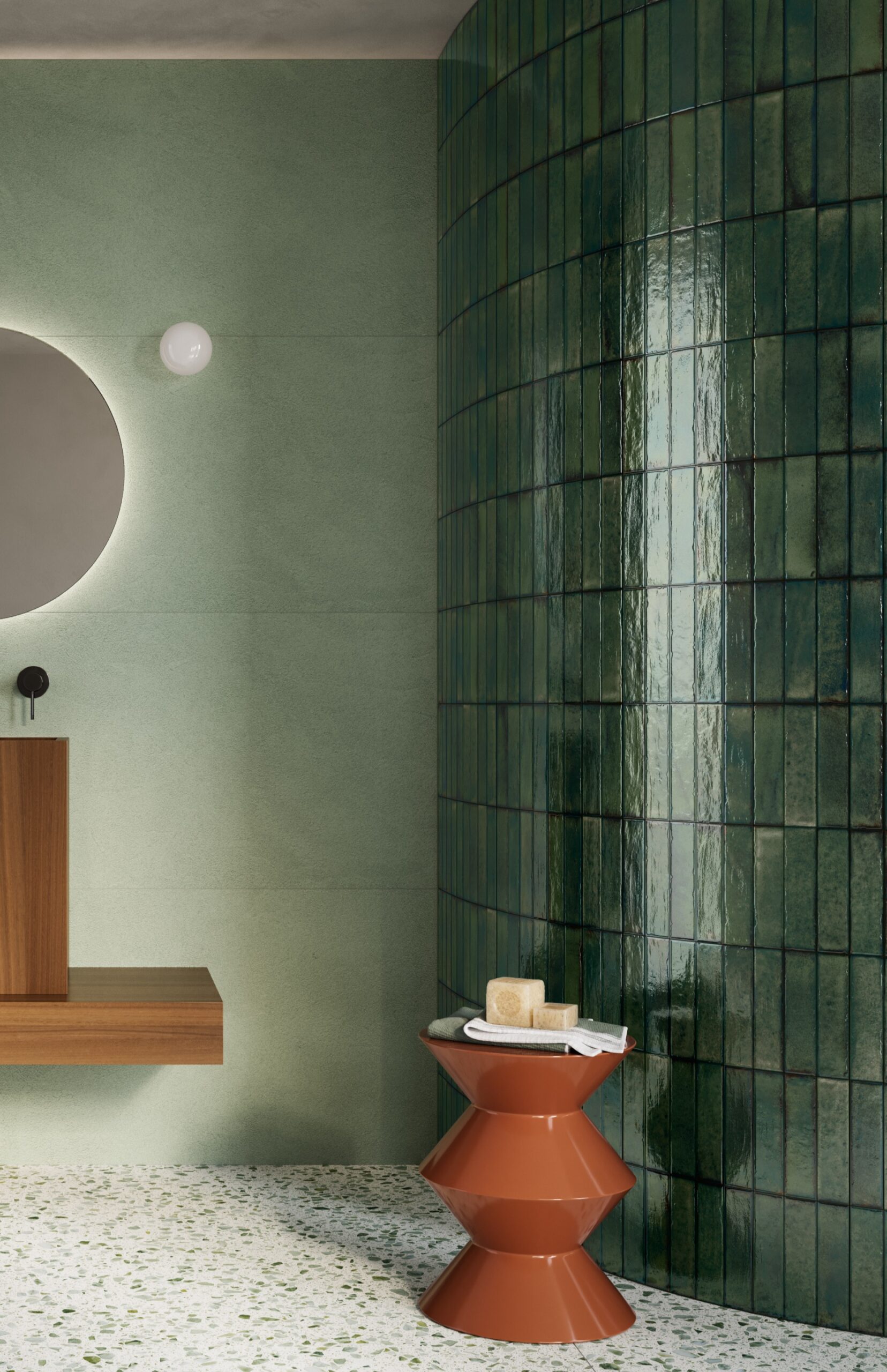 Groen is de kleur van natuur, frisheid en balans. Het roept rust op – precies wat je zoekt in een badkamer. Denk aan een boswandeling of frisse ochtendlucht: groen brengt ontspanning in je interieur. In het toilet zie je datzelfde frisse effect, maar dan vaak net wat gedurfder. Daar combineren mensen groene tegels, zoals de populaire zelligeslook-tegel, juist vaker met uitgesproken kleuren of een speels patroon.